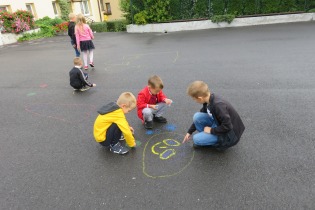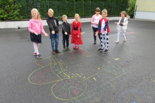 W dniu 15 września po raz kolejny obchodziliśmy w naszej szkole „International Dot Day” czyli Międzynarodowy Dzień Kropki – święto kreatywności i zabawy kolorami. Nauczyciele klas 0-3 przygotowali wiele ciekawych zabaw i aktywności, które pomogły dzieciom odkrywać ich talenty artystyczne i pobudziły wyobraźnię. Najmłodsi milusińscy rysowali „swój kropkowy świat” i dekorowali plac przed szkołą kolorową kredą. Klasy 1-3 wycinały „kropkowe drzewka” , malowały „kropkowe zwierzątka” i kolorowały „kropkową tęczę”. Uczniowie klasy 3 otrzymali nawet dyplomy, bo przecież każdy z nas ma w sobie ukryty talent. Starsi uczniowie klas 4-8 przebierali się w stroje w kropki, wszyscy dobrze się bawili. Dużą niespodzianką był „Mionionek” z kl. 6, który pojawił się tego dnia wśród nas.