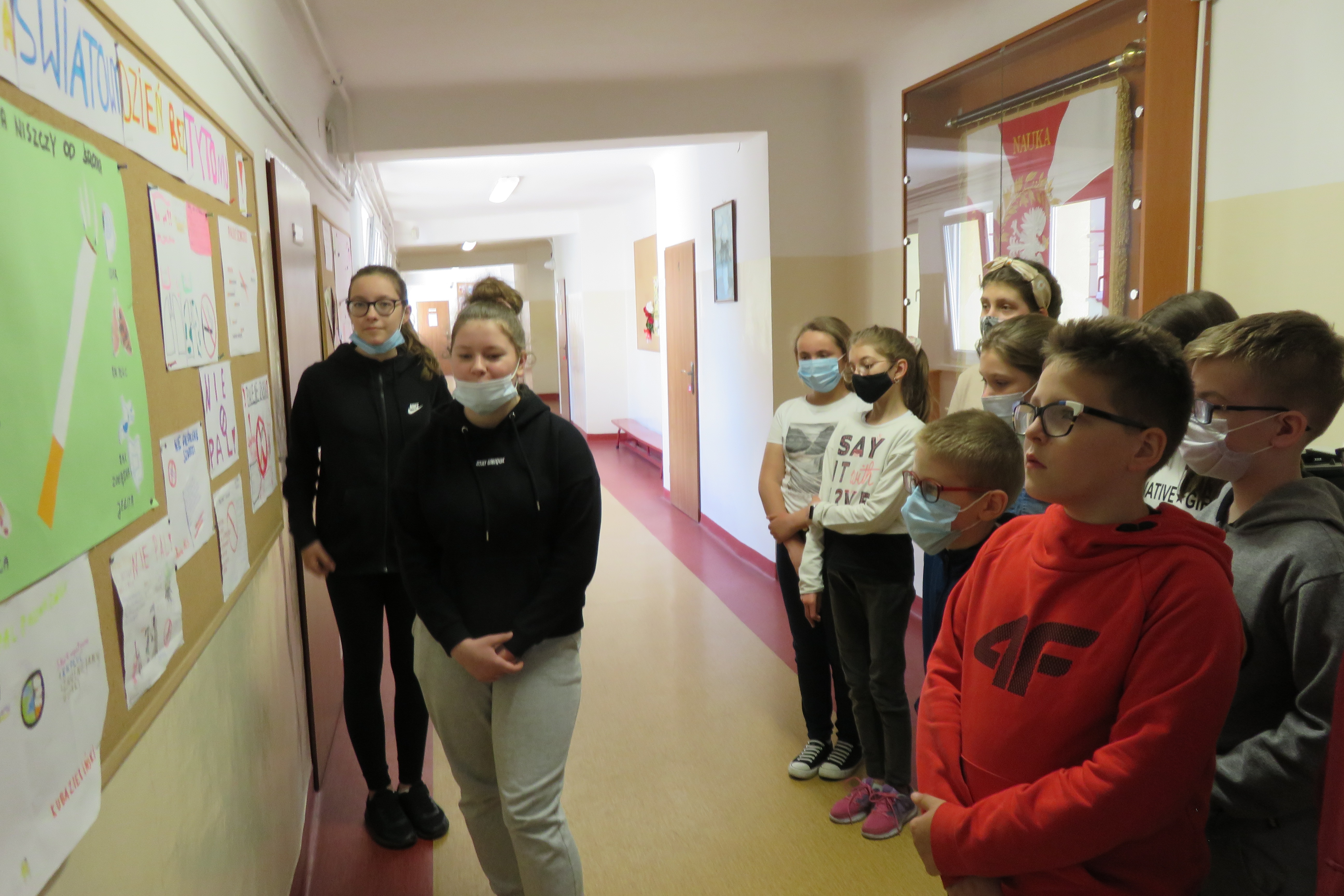 W dniu 31 maja w naszej szkole obchodzono „Światowy Dzień bez Tytoniu”. Właśnie w tym dniu, dniu powrotu uczniów do szkół na zajęcia stacjonarne, zaprezentowano na gazetce szkolnej wszystkie projekty i plakaty wykonane przez uczniów z klasy 5 w trakcie nauczania zdalnego. W ramach godzin wychowawczych realizowanych online każdy uczeń klasy 5 przygotował krótką ustną prezentację na temat szkodliwości nikotyny i zagrożeń jakie niesie ze sobą palenie papierosów. Dodatkowo uczniowie przygotowali kolorowe plakaty o tematyce antynikotynowej, aby graficznie przedstawić jakie problemy zdrowotne mogą mieć w przyszłości nałogowi palacze papierosów. Ponadto, uczniowie kl „0” – 7 naszej szkoły brali udział w tym dniu w krótkiej prelekcji przygotowanej przez dwie uczennice kl 5: Zuzannę Kurczbuch i Milenę Żarnecką, które ostrzegały młodszych uczniów przed konsekwencjami palenia tytoniu i skutecznie zniechęciły starszych uczniów, uświadamiając im zagrożenia zdrowotne związane z tym nałogiem. Dodatkowym czynnikiem zniechęcającym miało być też zadanie matematyczne – starsi uczniowie obliczali ile przeciętny Polak, który pali codziennie paczkę papierosów wydaje rocznie i co za te pieniądze można było kupić lub gdzie wyjechać na niezwykłe zagraniczne wakacje.