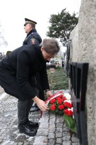 Kwiaty przy obelisku upamiętniającym rozstrzelanych żołnierzy w imieniu Miasta i jego mieszkańców złożyli prezydent Krystian Kinastowski, Tadeusz Skarżyński - przewodniczący Rady Miasta Kalisza oraz w imieniu społeczności szkolnej Szkoły Podstawowej im. Armii Krajowej w Skarszewie - dyrektor szkoły Magdalena Mikołajczyk.