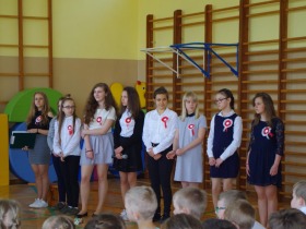 Po tym niezwykle podniosłym momencie nastąpiła równie uroczysta akademia. Uczniowie przypomnieli wydarzenia sprzed ponad 200 lat, pokazując, jak postępowym i nowoczesnym krajem była Rzeczpospolita. Pięknym recytacjom poezji patriotycznej towarzyszyły dźwięki piosenki „Witaj majowa jutrzenko!” oraz dekoracje, rekwizyty i stroje, które pomogły w zrozumieniu jakże ważnych, a zarazem trudnych treści.