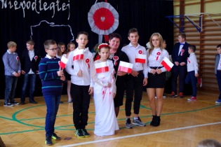 Dnia 9 listopada 2018 roku uczniowie naszej szkoły wzięli udział w uroczystej akademii z okazji rocznicy odzyskania przez Polskę niepodległości w 1918 r. Było to wyjątkowe święto, ponieważ upamiętniało setną rocznicę tego wydarzenia.