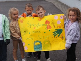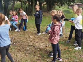 W poniedziałek 23 września uczniowie naszej szkoły ponownie przyłączyli się do Akcji Sprzątania Świata. Głównym jej celem jest rozbudzenie świadomości ekologicznej uczniów i odpowiedzialności za środowisko naturalne. Akcja ma również pokazać uczniom, że rozwiązaniem problemu zaśmieconego środowiska jest nie tylko coroczna zbiórka śmieci, ale przede wszystkim zmiana nawyków w codziennym życiu, segregacja i umiejętne gospodarowanie odpadami. Najmłodsi z nich, czyli dzieci z oddziału przedszkolnego oraz klasy pierwszej, drugiej i trzeciej ochoczo zabrali się za porządkowanie naszej najbliższej okolicy. Po pracy nastał upragniony odpoczynek. Przy przygotowanym ognisku z pieczonymi ziemniakami uczniowie spędzili czas na wspólnych rozmowach i zabawach.