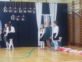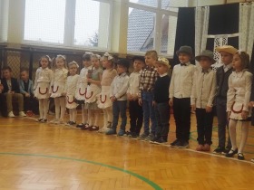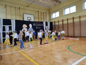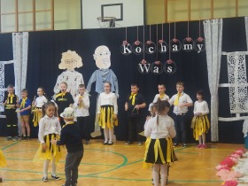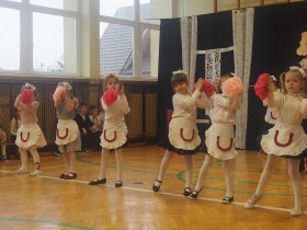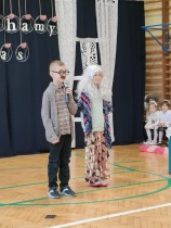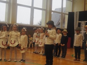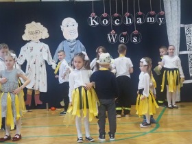 Przed tak wyjątkową widownią najpierw zaprezentowały się dzieci z oddziału przedszkolnego pod przewodnictwem wychowawczyni p. Edyty Waszak. Najmłodsi przedstawili kilka humorystycznych ciekawostek, zatańczyli, zaśpiewali, a także troszkę powspominali. Następnie uczniowie z klasy I przygotowani przez wychowawczynią p. Agnieszkę Janczak poprzez wierszyki wyrazili ogrom miłości do babć i dziadków. Pierwszak i przedszkolaki wykonały również taniec przypominający młodzieńcze zabawy dziadków - mini tango. Dzieci z klasy III pod czujnym okiem wychowawczyni p. Anny Balcerzyk przygotowały przedstawienie pt. „Tadek - Niejadek”. Była to niezwykle zabawna historia z Babcią i Dziadkiem w roli głównej. Trzecioklasiści stworzyli również akompaniament do wspólnego tańca z przedszkolakami. Z kolei uczniowie z klasy II wraz z wychowawczynią p. Martą Czerkawską zaprosili kochane Babcie i kochanych Dziadków do obejrzenia teleturnieju pt. „Babcia i Dziadek roku”. Po emocjonującym pojedynku okazało się, że ten zaszczytny tytuł przyznano każdej Babci i każdemu Dziadkowi. Tę niezwykłą uroczystość umilała cudowna grupa taneczna pod kierunkiem p. Edyty Waszak. Dzieci z niezwykłą gracją oraz muzykalnością zaprezentowały: układ taneczny „Góry do góry”, interpretację utworu „Nic dwa razy się nie zdarza” oraz taniec „Tarantela”.