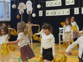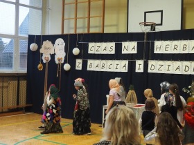 Babcie i Dzidkowie podziwiali piękne stroje i doskonale wyuczone kwestie. Następnie z humorystycznym akcentem wkroczyły na scenę babuszki z grupy tanecznej. Dzieci bardzo realistycznie wcieliły się w rolę babć. Barwne stroje i rekwizyty do tańca cieszyły oko widzów. Uczniowie z klasy III zainspirowani energią, dobrocią i poczuciem humoru Babć i Dziadków pod okiem Pani Marty Czerkawskiej wystąpiły w skeczu pt: „ Babcie i Dziadkowie -jacy są naprawdę?”. Dzieci za pomocą lornetki obserwowały zajęcia babci i dziadka.