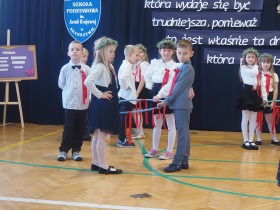 W niezwykle podniosłej atmosferze, w obecności pocztu sztandarowego, uczniowie ślubowali być dobrymi Polakami, godnie reprezentować swoją szkołę, swym zachowaniem i nauką sprawiać radość rodzicom i nauczycielom.