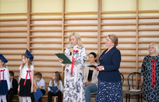 Następnym ważnym wydarzeniem tej uroczystości było wręczenie przez dyrektora szkoły dr Dorotę Sobczak nagród wyróżniającym się nauczycielkom: pani Edycie Waszak i pani Marcie Czerkawskiej oraz pracownikowi obsługi szkoły panu Krzysztofowi Błaszczyńskiemu.