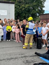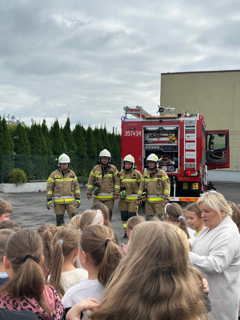 Serdecznie dziękujemy strażakom za obecność, zaangażowanie i przeprowadzenie pokazu, a uczniom gratulujemy zdyscyplinowanego zachowania. Mamy nadzieję, że zdobyta wiedza i umiejętności pozostaną z nami na długo i sprawią, że w każdej sytuacji będziemy potrafili działać mądrze i odpowiedzialnie.