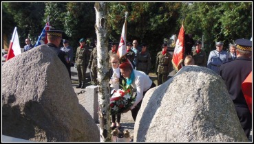 Kolejnym punktem uroczystości było składanie kwiatów i zapalanie zniczy w Miejscu Pamięci w lesie w Skarszewie. W uroczystości udział wzięli: dyrekcja, nauczyciele, wszyscy uczniowie i pracownicy szkoły. Przybyli również goście, którzy swoją obecnością, uświetnili wydarzenie. Minuta ciszy, krótka historia Armii Krajowej, zapalone znicze, wiązanki kwiatów i wspólne odśpiewanie hymnu państwowego, dodały uroczystości wyjątkowego charakteru.
