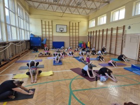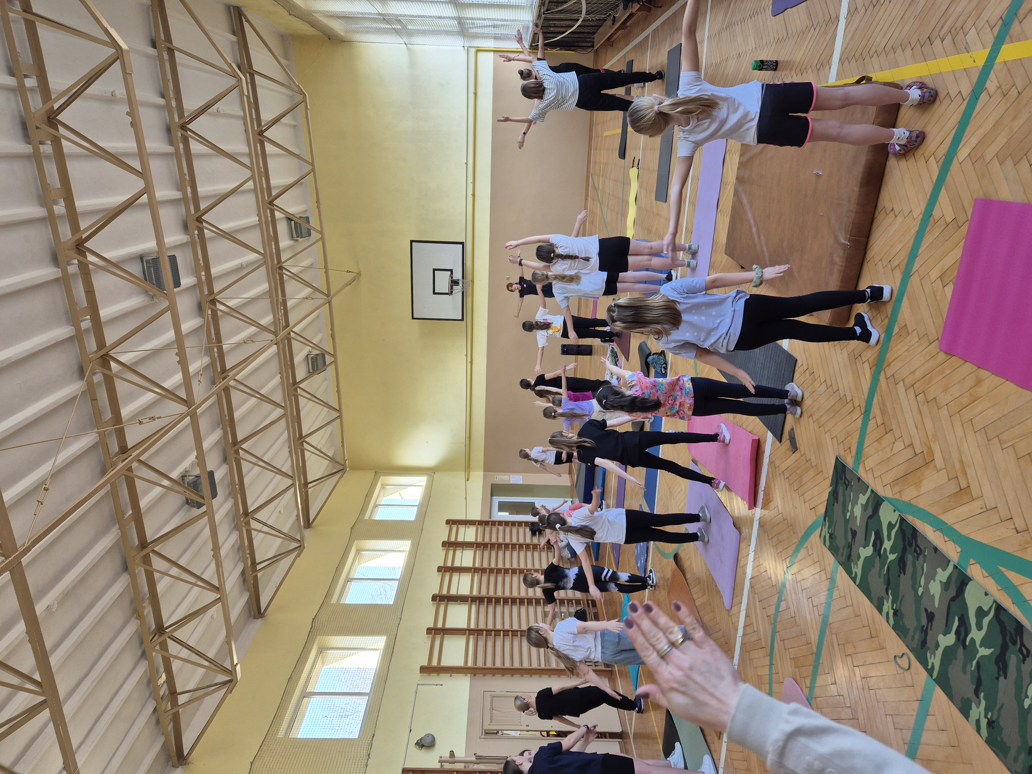 Najwięcej radości przyniosły zajęcia sportowe na sali gimnastycznej. Pod okiem p. Barbary Błaszczyk dzielnie ćwiczyły zarówno dziewczynki jak i Panie. Poranny trening wywołał mnóstwo pozytywnych emocji, odprężenie od codziennych zajęć i poprawę samopoczucia. Ćwiczenia wzmocniły zarówno ciało jak i poprawiły koncentrację. Trening na sali był możliwy dzięki wsparciu naszych Panów, którzy w tym czasie zorganizowali dla chłopców sportowe zajęcia na boisku szkolnym. Mimo wysiłku wszystkie dziewczyny były zrelaksowane i z niecierpliwością oczekują na kolejne takie zajęcia!