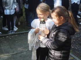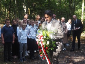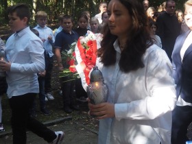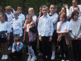 Po części oficjalnej przyszedł czas na część artystyczną, przygotowaną przez uczniów klasy VI z pomocą Pani Izabeli Chankiewicz. Kiedy już występ dobiegł końca, uczennica Julia Osiewała wraz ze szkolnym chórem odśpiewała pieśń Andrzeja Kołakowskiego pt. "Przysięga". Następnie wszyscy udaliśmy się do lasu skarszewskiego, aby oddać cześć rozstrzelanym działaczom Polskiego Państwa Podziemnego. Tam zostały złożone kwiaty i zapalone znicze, które symbolizować mają naszą pamięć i szacunek. Przy pomniku mieliśmy przyjemność spotkać przedstawicieli władz lokalnych, dla których również ta data jest bardzo ważna.