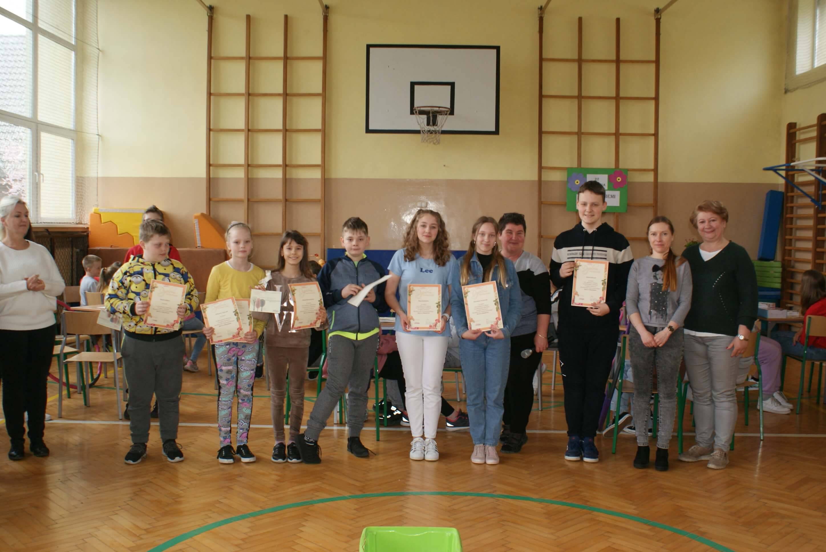 O godz.9.30 odbyło się podsumowanie imprezy, rozdanie dyplomów uczniom za udział w konkursach, losowanie nagród za prawidłowo rozwiązane krzyżówki oraz wspólne śniadanie.Obchody Dnia Ziemi uświetniły występy uczniów laureatów etapu szkolnego III Gminnego Konkursu Recytatorsko-Inscenizatorskiego pt. „ Harce z klasykiem”.