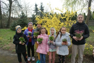 W dniach 20-21.04.2022 uczniowie kl.0-VIII przynieśli sadzonki roślin na rabatki przed szkołą, które zostały posadzone przez wybranych uczniów 22.04.2022 pod opieką pani Anny Sałaty.