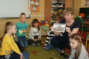 o dokładnym wymawianiu tekstu. Świetnie bawiliśmy się przy aktywnym słuchaniu wiersza „Sprytne gąski”.