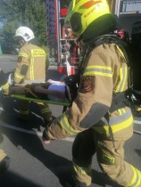 W miniony piątek w naszej szkole rozległ się alarm ewakuacyjny. Uczniowie wraz z nauczycielami i pozostałymi pracownikami szkoły opuścili budynek szkoły i udali się na miejsce zbiórki. Nauczyciele przekazali p. dyrektor Dorocie Sobczak, prowadzącej akcję ewakuacyjną, informacje dotyczące stanu liczebności klas. Meldunek został następnie przekazany druhowi Bartoszowi Waszakowi dowodzącemu akcją. Gdy okazało się, że w budynku pozostał 1 ranny uczeń, strażacy rozpoczęli akcję ratunkową, a następnie zabezpieczanie rannego ucznia. Zastęp OSP Skarszew w składzie: Tomasz Karpisiewicz, Kacper Kmieć, Bartosz Waszak, Magdalena Żarnecka, Tomasz Żarnecki błyskawicznie i profesjonalnie opanował sytuację i udzielił pomocy rannemu uczniowi. Wszyscy odetchnęli z ulgą, a dzielni strażacy zostali nagrodzeni brawami. Po tych emocjach uczniowie mieli okazję zapoznać się z możliwościami nowego ciężkiego samochodu ratowniczo-gaśniczego OSP Skarszew oraz przyjrzeć się pracy strażaków.