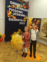 29 listopada 2023 roku uczennice: Lena Olszewska z klasy pierwszej oraz Martyna Janicka z klasy trzeciej reprezentowały naszą szkołę w Gminnym Konkursie Piosenki Jesiennej, który odbył się w Szkole Podstawowej w Biernatkach. Celem konkursu było wyłonienie utalentowanych muzycznie dzieci, kształcenie umiejętności wokalnych oraz dostarczanie dzieciom doznań estetycznych i emocjonalnych wypływających z piękna treści utworów muzycznych. Dziewczynki z naszej szkoły pięknie zaśpiewały piosenki, oddając nastrój jesieni.
