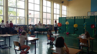 Dnia 15.05.2017 r. w Szkole Podstawowej w Kokaninie odbył się Gminny Konkurs Plastyczny „Witaj wiosno!”. Celem konkursu było: uwrażliwienie dzieci na piękno przyrody, kształtowanie umiejętności przekazywania w formie plastycznej zmian zachodzących w przyrodzie oraz rozwijanie talentów artystycznych uczniów, kreatywności, wrażliwości oraz wyobraźni twórczej. Dzieci przez godzinę malowały farbami i rysowały kredkami prace, a potem otrzymały słodki posiłek. Naszą Szkołę reprezentowały: Oliwia Chojnacka i Agata Kaczmarek.