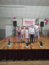 Dnia 26. 04.2023 nasi uczniowie w składzie: Lena Olszewska, Inga Tresenberg, Pola Karpisiewicz (Oddział Przedszkolny), Bartłomiej Waszak (kl.2) oraz Marta Grzelak (kl.4) reprezentowali naszą placówkę na Gminnym Konkursie pt: "Piosenka dla Mamy" organizowanym przez Gminny Ośrodek Kultury w Żelazkowie. Występy oceniane były przez wykwalifikowane jury. Naszym reprezentantom towarzyszyła Pani Edyta Waszak, wsparciem byli również rodzice, którzy ze wzruszeniem oglądali występy swoich dzieci. Gratulujemy wszystkim uczestnikom a w szczególności laureatom! W kategorii przedszkolaków: 2 miejsce zajęła Lena Olszewska. W kategorii klas I-III szkół podstawowych: 2 miejsce zajął Bartłomiej Waszak. W kategorii klas IV-VI szkół podstawowych: wyróżnienie otrzymała Marta Grzelak . Życzymy dalszych sukcesów muzycznych. Uczestnicy otrzymali nagrody rzeczowe z rąk Wójta Gminy Żelazków Pana Michała Kraszkiewicza. Nagrodzeni i wyróżnieni uczniowie będą mieli zaszczyt wystąpić na festynie z okazji Dnia Dziecka w Żelazkowie.