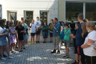 Po ogłoszeniu wyników i wręczeniu nagród książkowych uczniowie naszej szkoły mieli okazję spotkać się z Lechem Wierzbowskim, aktorem Teatru im. Wojciecha Bogusławskiego w Kaliszu. Zadawali mu różne pytania dotyczące pracy na deskach teatru i dowiedzieli się wielu interesujących rzeczy, z którymi na co dzień ma do czynienia aktor teatralny.