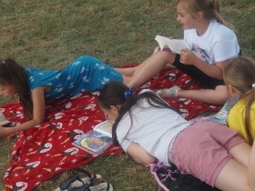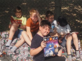 Tegoroczne czytanie w naszej szkole odbyło się na świeżym powietrzu, w formie relaksującego pikniku. Każdy z uczestników czytał przyniesioną swoją ulubioną książkę. Stworzyło to również możliwość rozmowy na temat literatury oraz zaprezentowania rówieśnikom wybranych lektur. Akcja wszystkim bardzo się spodobała, na pewno powtórzymy za rok. Poniżej krótka fotorelacja z tego wydarzenia.