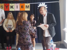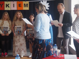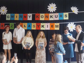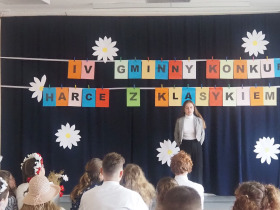 Amerykański poeta Robert Frost powiedział kiedyś, że: „Poezja jest wtedy, gdy emocje znajdują swoje myśli, a myśli znajdują swoje słowa”. Doświadczyliśmy tego na pewno będąc świadkami już IV Gminnego Konkursu Recytatorsko-Inscenizatorskiego „Harce z klasykiem”, który odbył się w naszej szkole 25.04.2023 roku. Podobnie jak w zeszłym, tak i w tym roku swoją obecnością zaszczyciło nas szanowne jury, w którego skład weszli: pani Barbara Nowak, pani Anna Popiołek oraz pan Lech Wierzbowski. Patronat nad konkursem objęła Pani Dyrektor Dorota Sobczak. Tym razem piętnastu młodych artystów zaprezentowało swój kunszt recytatorski oraz aktorski, wybierając utwory z kanonu takich poetów jak: Adam Mickiewicz, Adam Asnyk, Juliusz Słowacki, Wisława Szymborska, Jan Brzechwa czy Julian Tuwim. Ponadto uczniowie uatrakcyjnili swoje występy różnymi rekwizytami oraz odpowiednio dobranymi strojami. Niektóre wykonania były ekspresyjne, żywiołowe, inne natomiast pełne liryzmu – wszystkie wszakże wywoływały poruszenie i tworzyły niezwykły nastrój. Wśród wyróżnionych uczniów była Joanna Kaczmarek ze Szkoły Podstawowej w Żelazkowie, która wyrecytowała wiersz J. Tuwima „Spóźniony słowik” i swym bogatym w emocje wykonaniem zwróciła na siebie uwagę jury. Kolejną osobą była Viktoria Długiewicz ze Szkoły Podstawowej w Dębem, wykonująca z opanowaniem i świetną dykcją wiersz A. Mickiewicza „Przyjaciele”. Trzecią wyróżnioną osobą była Oliwia Gajewska ze Szkoły Podstawowej w Kokaninie, która z wdziękiem zaprezentowała się w utworze J. Tuwima „Dwa wiatry”. Pierwsze miejsce zajęła Julia Osiewała ze Szkoły Podstawowej w Skarszewie. Uczennica w sposób fenomenalny odegrała aktorsko rolę sympatycznego leniuszka siedzącego na kanapie, ukazując swój warsztat artystyczny w wierszu J. Brzechwy „Leń”. Drugie miejsce zdobyła Zuzanna Kurczbuch ze Szkoły Podstawowej w Skarszewie. Zwróciła ona uwagę strojem, nawiązującym do symboli ojczystych i swym pełnym tęsknoty i nostalgii występem przekonała do siebie arbitrów, wykonując wiersz J. Słowackiego „Hymn o zachodzie słońca na morzu”. Trzecie natomiast miejsce zajął Antoni Andrzejewski ze Szkoły Podstawowej w Skarszewie, który w brawurowy sposób wyrecytował wiersz miłosny A. Asnyka „Między nami nic nie było”. Wszyscy uczestnicy konkursu otrzymali dyplomy oraz nagrody książkowe. Młodym artystom serdecznie gratulujemy i życzymy dalszych sukcesów w kolejnych edycjach konkursu, ponieważ jak powiedział Witold Gombrowicz: „Wielka poezja, będąc wielką i będąc poezją, nie może nie zachwycać nas, a więc zachwyca”.