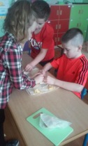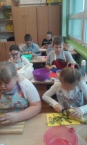 W czasie naszych działań kulinarnych wszyscy bardzo dobrze się bawiliśmy. Było dużo śmiechu. Uczniowie zgodnie stwierdzili, że lubią pracować w kuchni i będą pomagać mamom w pracach kulinarnych.