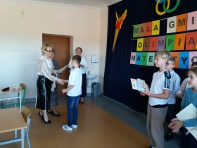 W ciągu 60 minut młodzi matematycy rozwiązywali 6 zadań tekstowych o różnym stopniu trudności. Konkursowe zagadnienia tradycyjnie przygotowała p. Małgorzata Kraszkiewicz, nauczyciel konsultant ds. edukacji przedszkolnej i wczesnoszkolnej oraz dyrektor Szkoły Podstawowej w Mycielinie.