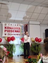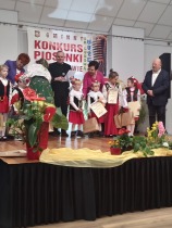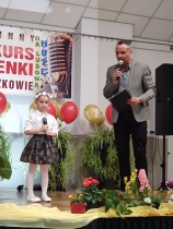 W piątek 11.04. 2025r. wybrane na drodze eliminacji szkolnych, uczennice klas 0 ( Adrianna Płuciennik, Helena Waszak, Nina Wałęsiak), I (Zuzanna Siuda) , II (Maja Sowińska , Lena Olszewska) oraz IV ( Barbara Kurczbuch, Pola Gabrysiak, Martyna Janicka) wzięły udział w Gminnym Konkursie Piosenki "Na ludową nutę". Dziewczynki godnie reprezentowały naszą szkołę. Uczennice ukazały bogactwo polskiej muzyki ludowej w formie prezentacji wokalnej. Dzięki pięknym, pomysłowym i barwnym strojom miło się słuchało, ale również oglądało występy. Na widowni kciuki trzymali rodzice oraz Pani Edyta Waszak. Konkurs cieszył się dużym zainteresowaniem, jury miała naprawdę ciężką decyzję, by zdecydować, kto wygra. Adrianna Płuciennik z klasy 0 zajęła III miejsce ( w kategorii - przedszkolaki). Maja Sowińska uczennica klasy II otrzymała I wyróżnienie ( w kategorii- uczniowie klas I-III szkół podstawowych). Gratulujemy i życzymy dalszych sukcesów. Wszyscy uczestnicy otrzymali dyplomy uczestnictwa oraz upominki. Laureaci otrzymali dyplomy i nagrody oraz zaprezentują swoje utwory na festynie z okazji " Dnia dziecka" oraz na Gminnych Dożynkach. Bardzo się cieszymy, że "Ludowa nuta" przypadła do gustu naszym uczennicom.