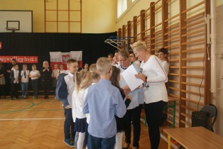 Uczniowie krótko przedstawili historię odzyskania przez Polskę niepodległości i zaprosili wszystkie klasy do rozwiązania quizu niepodległościowego, który zawierał 9 zadań. Mieli za zadanie m. in. odgadnąć tytuły polskich piosenek, umieścić na mapie miasta Polski, dopasować zdjęcia bohaterów historycznych do krótkich opisów, stworzyć z puzzli postać Józefa Piłsudskiego, ułożyć wiersz Kto ty jesteś, Polak mały czy dopasować przysłowia. Duże zainteresowanie wzbudziło rozwiązywanie zagadek o Polsce.