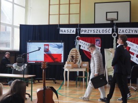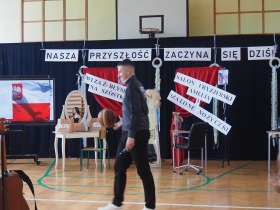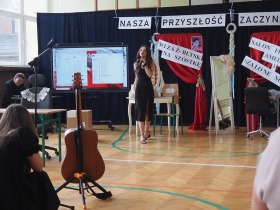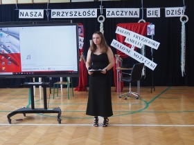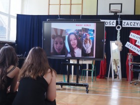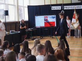 Wspólnie odśpiewaliśmy też hymn państwowy, a na tablicy multimedialnej pojawiła się powiewająca flaga Polski, podkreślająca rangę tego momentu.