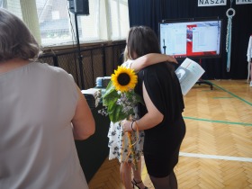 Szczególne podziękowania i kwiaty otrzymały Pani Dyrektor oraz Wychowawczyni klasy ósmej – za serce, za wsparcie i obecność przez wszystkie szkolne lata.