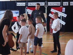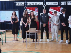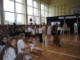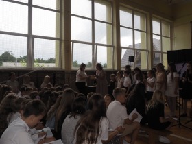 Podczas uroczystości wystąpili również przedstawiciele szkolnego chóru w wakacyjnej piosence, która wprowadziła wszystkich w letni nastrój i była symbolicznym zaproszeniem do odpoczynku i wakacyjnego relaksu.