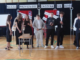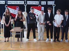 27 czerwca 2025 roku w naszej szkole odbyła się uroczystość zakończenia roku szkolnego połączona z pożegnaniem uczniów klasy ósmej. Hasłem przewodnim akademii były słowa – „Nasza przyszłość zaczyna się dziś” – i właśnie w takim duchu przebiegało to wydarzenie; z nutą wzruszenia, refleksji i nadziei na nowy piękny początek i nowe wyzwania.