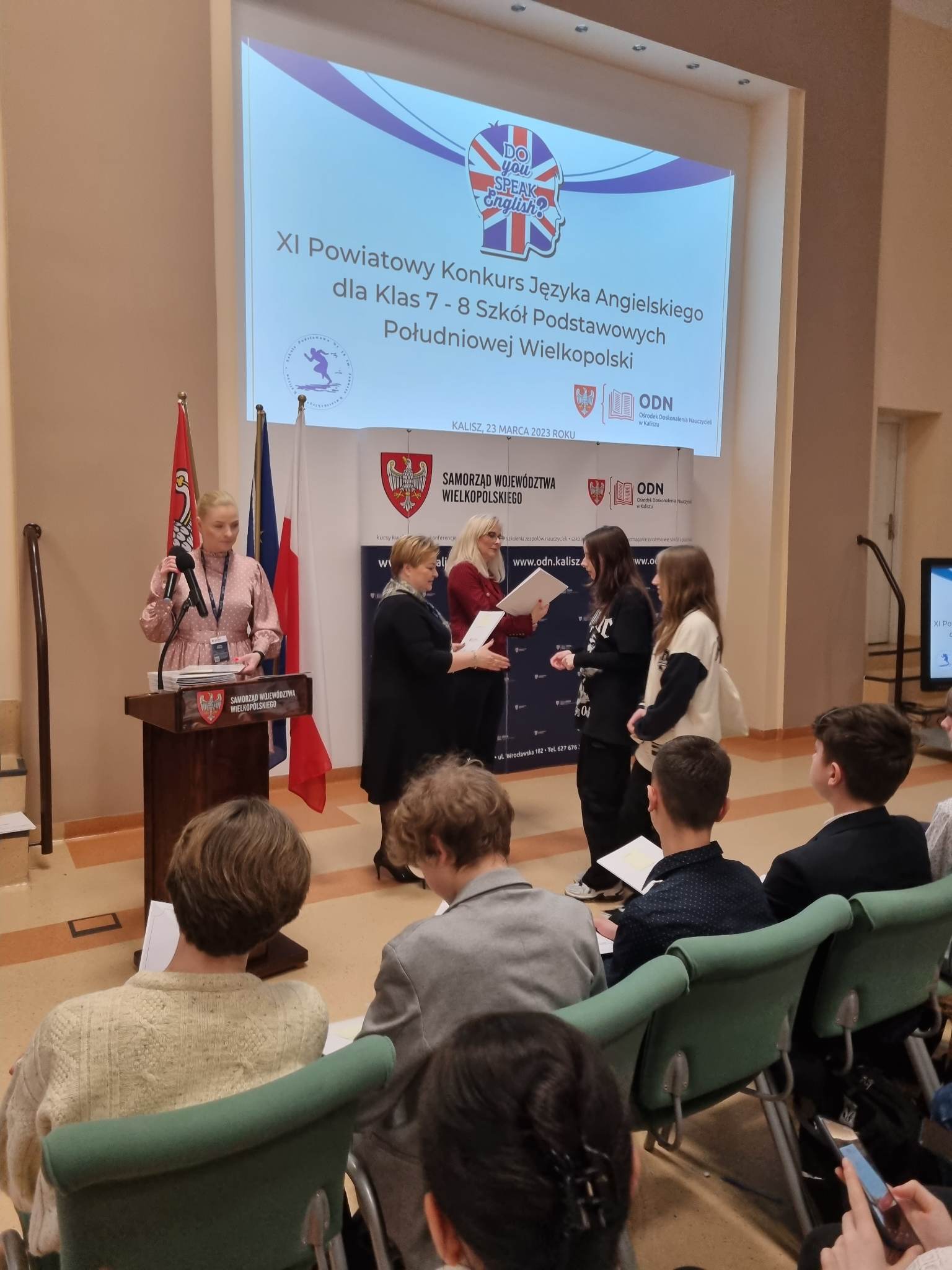 23 marca w auli Ośrodka Doskonalenia Nauczycieli w Kaliszu odbył się XI Powiatowy Konkurs Języka Angielskiego dla klas 7-8 Szkół Podstawowych Południowej Wielkopolski. Konkurs pokazał, iż uczniowie reprezentują bardzo wysoki poziom; należało rozwiązać test gramatyczno- leksykalny, napisać e-maila oraz wykazać się takimi umiejętnościami językowymi jak rozumienie ze słuchu i czytanie ze zrozumieniem. Nasze uczennice tzn. Julia Pilarska i Maria Buczkowska z klasy 8 nie zakwalifikowały się do części ustnej, do której zakwalifikowało się tylko 4 najlepszych uczestników ( spośród około 100 uczniów), ale i tak jesteśmy dumni i gratulujemy osiągnięć. Udział w tak prestiżowym konkursie to z pewnością wielka przygoda i nowe życiowe doświadczenia. GRATULUJEMY!!!