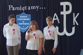 27 września, w dniu Święta Polskiego Państwa Podziemnego, obchodzimy Święto Patrona Szkoły – Armii Krajowej. Uczniowie odświętnie ubrani, z biało – czerwonymi kotylionami, oddali hołd męstwu, waleczności i poświęceniu żołnierzy i ludności cywilnej dla naszej Ojczyzny.