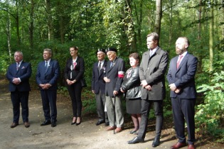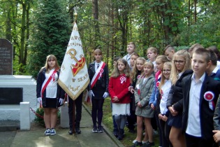 Druga część uroczystości odbyła się w Lesie Skarszewskim, przy pomniku 56 obywateli polskich – wśród nich członków Armii Krajowej, rozstrzelanych w dniu 19 stycznia 1945 r. Pani Dyrektor oraz przedstawiciele Rodziców i Uczniów złożyli kwiaty oraz zapalili znicze pamięci. Oddaliśmy również hołd zamordowanym patriotom zapalając znicze na Cmentarzu Tynieckim.