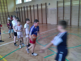 Uczniowie klasy czwartej poznają zasady i wzbogacają swoje umiejętności techniczne gry w piłkę koszykową. W dniu 27 lutego 2014r. przeprowadzono lekcję w ramach programu "Ćwiczyć każdy może" - temat lekcji brzmiał Piłka koszykowa - nauka rzutu do kosza z dwutaktu. 3, 19 , 24 marca 2014r. na lekcjach wychowania fizycznego uczniowie doskonalili poznany sposób rzutu do kosza.