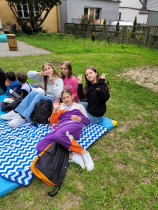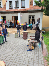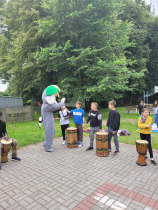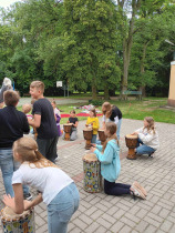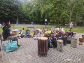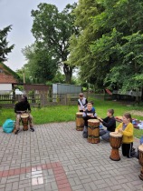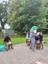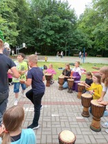 12 czerwca uczniowie klasy piątej mieli przyjemność wziąć udział w pikniku połączonym z warsztatami bębniarskimi, które poprowadził mistrz w sztuce gry na bębnach, znakomity artysta afrykański, Gaspard Conde. Sami też mieli przyjemność pograć na afrykańskich bębnach i pośpiewać z muzykiem. Dzieciaki przywitał również przyjaciel dzieci król Julian. Atmosfera była pełna radości i uśmiechów, a cały dzień obfitował w niezapomniane chwile. Uczniowie pograli w piłkę, zjedli przepyszne lody i drożdżówki. Ponadto mogli też poznać lub spotkać się z koleżanki i kolegami z innej szkoły na terenie gminy Żelazków. To było udane przedpołudnie dzięki pomocy rodzicom, którzy dowieźli swoje pociechy do Szkoły Podstawowej w Biernatkach. Dziękuję bardzo za pomoc.