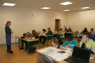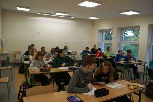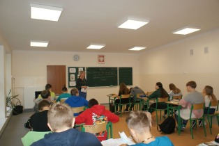 Na pierwszej lekcji odwiedziła nas Pani Dyrektor, która towarzyszyła nam do końca zajęć. Wtedy zaczął się stres, że pójdzie nam źle. Robiliśmy ciekawe zadania na temat naszej lektury „Zemsty”. Zajęcia prowadziły Pani Marta Jaśkiewicz, Pani Monika Waliś-Trubacz oraz Pani Izabela Chankiewicz. Odwiedzało nas wielu nauczycieli, którzy patrzyli na to, jak pracujemy. Dwie pierwsze lekcje były stresujące, ale stopniowo nerwy nas opuszczały.