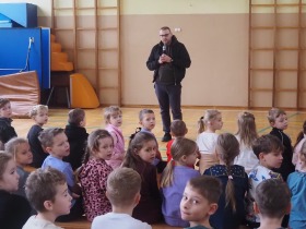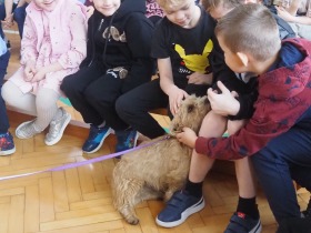 W czwartek, 14 listopada, do naszej szkoły przybyli szczególni goście. Byli to wolontariusze z kaliskiego schroniska dla bezdomnych zwierząt, którzy odwiedzili nas wraz z jednym ze swoich podopiecznych. Uczniowie mieli szansę dowiedzieć się, na czym polega praca w schronisku, a także jak istotna jest pomoc darczyńców, aby zapewnić zwierzętom godne życie. Uczniowie naszej szkoły chętnie przystąpili do akcji wspierania czworonogów, przekazując karmę, koce i wiele innych potrzebnych produktów.