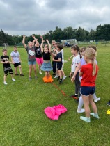 Równolegle z rozgrywkami sportowymi na terenie boiska trwał piknik. Uczniowie rozkładali koce, przynosili własne przekąski i wspólnie z wychowawcami spędzali czas na rozmowach i zabawach integracyjnych. Nie zabrakło także atrakcji kulinarnych – dzięki uprzejmości rodziców i wsparciu szkoły zorganizowano grill, na którym serwowano pyszne kiełbaski. Dzieci mogły także delektować się lodami, które przy tej okazji cieszyły się ogromnym powodzeniem.