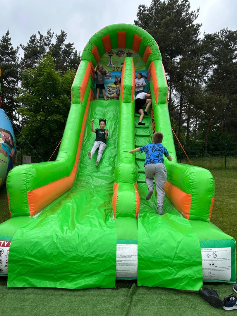 Niewątpliwą atrakcją dnia były również dmuchańce – kolorowe zamki i zjeżdżalnie, które dostarczyły najmłodszym uczestnikom mnóstwa śmiechu i beztroskiej zabawy. Ich obecność sprawiła, że każdy uczeń – niezależnie od wieku – znalazł coś dla siebie.