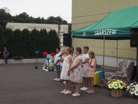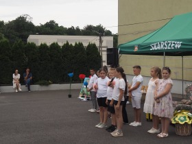 W sobotę, 15 czerwca 2024 roku odbył się w naszej szkole festyn rodzinny, którego mottem były słowa „ Rodzina kluczem do serc i wspomnień”. W tym wyjątkowym dniu byli z nami goście: radny gminy Zelazków p.Jacek Grzelak, p. Elżbieta Wojtyła - kierownik sekcji Oświaty Zdrowotnej i Promocji Zdrowia w Kaliszu, sołtysi wsi Skarszew i Skarszewek. Pani dyrektor Dorota Sobczak serdecznie powitała wszystkich zebranych, życzyła samych dobrych chwil oraz zaprosiła do korzystania z atrakcji zapewnionych przez Radę Rodziców i Sołectwo wsi Skarszewek.