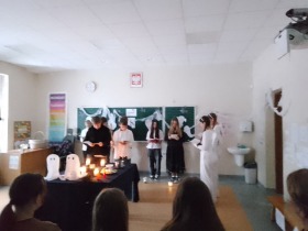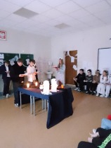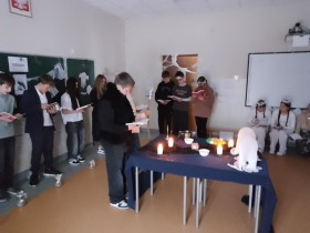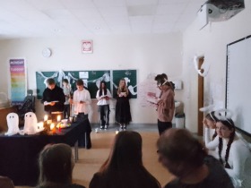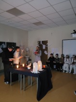 W dniu 24 listopada siódmoklasiści zaprosili uczniów klasy szóstej i ósmej na inscenizację „Dziadów” cz. II Adama Mickiewicza. Przedstawienie zostało przygotowane jako forma przybliżenia im treści lektury oraz tradycji obrzędów ludowych.