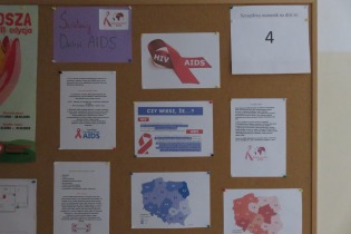 W dniu 1 grudnia obchodziliśmy w naszej szkole Światowy Dzień AIDS. Uczniowie klasy VII przygotowali gazetkę tematyczną na korytarzu, a na lekcjach biologii w klasach V-VIII odbyły się pogadanki z młodzieżą o przyczynach choroby, objawach, sposobie leczenie, profilaktyce i drodze zakażenia się wirusem HIV. Uczniowie obejrzeli również film dydaktyczny pt. „AIDS - epidemia wciąż niepokonana”.