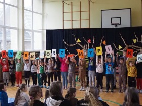 21 listopada 2022 roku obchodziliśmy Światowy Dzień Życzliwości i Pozdrowień. Z tej okazji uczniowie klasy 5 przygotowali krótkie przedstawienie pod tytułem „Drzewo, na którym rosły marzenia”. Celem występu było zwrócenie uwagi na problemy, z którymi niektórzy uczniowie muszą się niekiedy borykać. Tymczasem wszyscy marzymy o świecie przyjaznym, pełnym dobra, gdzie ludzie są dla siebie mili, pomocni, życzliwi i wyrozumiali. Aby każdy był równy i mógł liczyć na szacunek drugiego człowieka. Hasłem przewodnim przedstawienia były słowa: „Razem tworzymy świat i może być to piękny świat”.