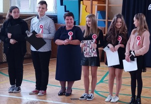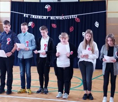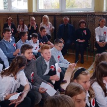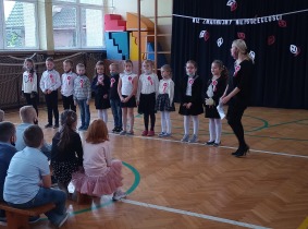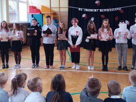 Ponadto dzisiejszy dzień był wyjątkowy, ponieważ również wszyscy uczniowie wzięli udział w Akademii i - jak powiedziała Pani Dyrektor- stali się bohaterami podczas wspólnego spotkania. Każda klasa bowiem musiała wybrać i przygotować jedną z pieśni wojskowych, które następnie uczniowie odśpiewali podczas Akademii. Pomagali wszyscy nauczyciele i oczywiście wychowawcy.