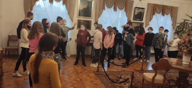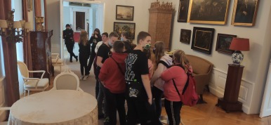 Ostatnią atrakcją w Rogalinie była lekcja historii przez zabawę i rozwiązywanie quizów o rodzinie Raczyńskich, dogłębnych szczegółach z ich życia oraz wydarzeniach historycznych. Cała grupa była podzielona na czteroosobowe zespoły, które zdobywały punkty.