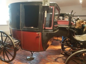 W pierwszej kolejności pojechaliśmy do rogalińskiego pałacu, który jest nie tylko spektakularną bryłą, ale również zawiera niezwykłe wnętrza i elewacje. Najpierw poszliśmy do ciekawego miejsca, jakim jest powozownia. Zawiera ona budzące zachwyt karety – w tym czteroosobową karetę pięciookienną, dwa powozy victorie, sanie wyjazdowe – otwarte z futrzanym przykryciem oraz dziecięce saneczki, które były przeznaczone do zabawy z psim zaprzęgiem.
