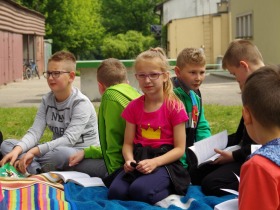 W środę (16.05.2018 r.) w związku z realizowanym w naszej szkole projektem Narodowy Program Rozwoju Czytelnictwa, klasa trzecia zorganizowała ciekawą i nietypową akcję. CZYTANIE NA TRAWIE – czyli spotkanie z książką na kocu, odbyło się w otoczeniu pięknej przyrody naszego przyszkolnego ogródka.