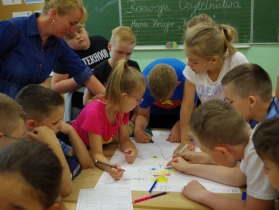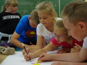 Podsumowaniem spotkania z „Karolcią” było wykonanie przez dzieci plakatu zachęcającego do przeczytania tej powieści.